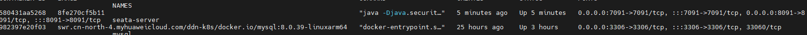 docker run -p 8091:8091 -p 7091:7091 --name seata-server --restart=always -e SEATA_IP=192.168.137 -e SEATA_PORT=8091 -v /path/to/seata/application.yml:/seata-server/resources/application.yml -v /home/zfc/java/seata/logs:/root/logs -d 8fe270cf5b11注意 8fe270cf5b11这个是我的容器id,因为我的个人镜像名字太长,所以使用id来启动