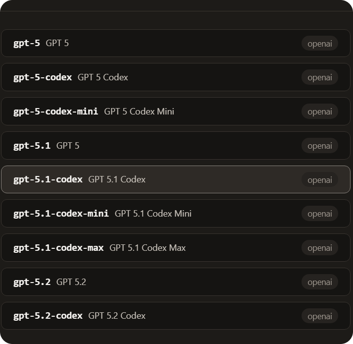 目前可供选择的模型有, /models 切换到以下模型即可正常, 不过也不要太担心, oai 之前在注册机最疯狂的时候也拉闸过(当时拉闸完就上了5.4-mini), 过几天就又开了, 期待吧